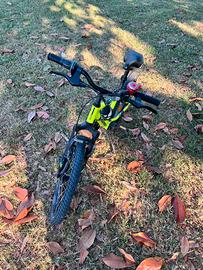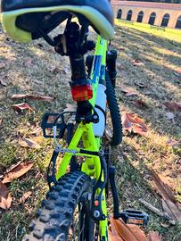 Vendo mountainbike misura 20, bambini. Acquistata da decathlon valore commerciale euro 240 . Vendo per passaggio mio figlio a misure successive. Fome nuova, utilizzata pochissimo. Stop e luce led (valore 15euro) + portaborraccia (valore 5 euro). Prezzo non trattabile.