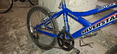 vendo bici mtb marca silverstar, cerchi 20 pollici, forcella ammortizzata, cambio shimano a 6 velocità , adatta a bambini 6-8 anni , funzionante tenuta bene pagamento contanti ritiro a mano