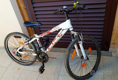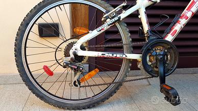 Bicicletta marca storica di qualità Bianchi modello Forza Duel MTB ruote da 24 raggi usata per un breve periodo vendo per passaggio sulla bici più grande. Completa di cambio Shimano, cavalletto, porta borraccia, forcella ammortizzata, freni, catarifrangenti, campanello, copertoni e camere d'aria perfetti, pronta ad utilizzo. Ritiro in zona Crocetta Torino.