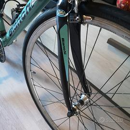 Bianchi da corsa, forcella in carbonio, perfetta, gomme appena comprate, manopole nuove, sellino nuovo (anche l originale), pignone corona pedali nuovo, corona centrale nuova, cambio registrato perfetto,