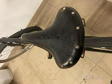Bici anni '40 tutta originale tranne pedali e sella (quella montata è una sella vintage presa online al costo di 70 euro). Appartenuta prima di me solamente al proprietario precedente, che l'aveva riverniciata di nero negli anni 70/80 perciò la vernice originaria è sotto. Pagata 280 euro.