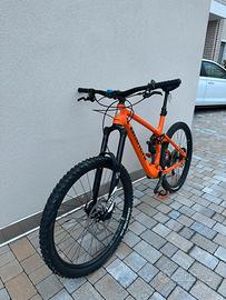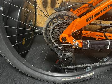 Bianchi Ethanol 27.1 27,5" FS carbonio, Taglia L Telaio: Carbonio, sterzo conico 1.5" ",PF30 73mm, reggisella Ø31,6mm, attacco deragliatore HDM side swing, attacco PM 160mm, asse passante Shimano QR142, passaggio cavi interno. • Ammortizzatore posteriore: Fox Float DPS Performance Elite, 200×57mm, 3 posizioni con regolazione open mode. • Forcella: RockShox Reba RL, corsa 120mm. • Sterzo: FSA Orbit C-40 ZS conico. • Comandi: Shimano XT 1×11v trigger. • Cambio: Shimano XT 11v gabbia lunga Shadow Plus. Guarnitura: FSA SL-K BB30 32T Megatooth, pedivelle 175mm. Movimento centrale: FSA BB30 incluso. • Catena: KMC X11. • Freni: Shimano XT idraulici, rotori 180mm/ 160mm. • Ruote: Fulcrum Red Power 27.5", tubeless ready. Mozzo posteriore: Fulcrum. Mozzo anteriore: Fulcrum. • Attacco manubrio: Tec Cursus in alluminio 7050-T6, +/-7°, Ø31.8mm, lunghezza 60mm. Manubrio: Tec Cursus rise AL2014-T6, larghezza 740mm, rise 20mm. • Reggisella: Telescopico KS Lev Integra Ø31.6mm, corsa 125mm, passaggio cavi interno per comando remoto. Sella: WTB Volt Race, 127×263mm. Condizioni: Perfette, manutenzione regolare. Per info o visione, contattami al 3493514871