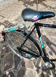 bicicletta con sella ammortizzata originale bianchi,campanello originale cambio stimano tourney 5 velocità. tutta originale dalla bulloneria alla dinamo alle luci. eroica bici completamente funzionante quasi da vetrina eliminato qualche graffietto .ottima in salone vicino a jukebox, juke box , flipper, taverna.