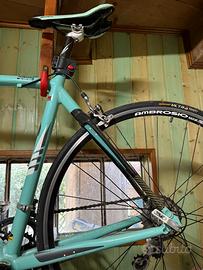 Bici da corsa Bianchi modello “via Nirone7” in alluminio con forcella, reggisella e carro posteriore in carbonio. In buone condizioni ma ferma da diversi anni causa inutilizzo. Adatta a persone di altezza 1.80.