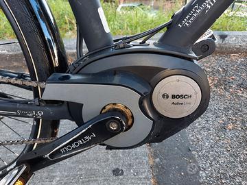 Bicicletta elettrica unisex Lombardo motore bosch centrale da 250w con pedalata assistita progressiva ottima anche x i diversamente giovani con blocco ruota posteriore copertoni antiforatura in ottimo stato cambio con otto rapporti forcella ammortizzata sella ammortizzata batteria powerpack 300 in ottimo stato presa x ricarica cellulari sempre garage.