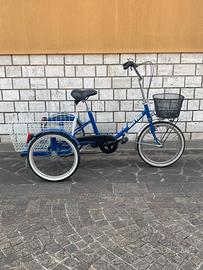 BICI TRIS Triciclo 20” con differenziale nell’asse posteriore, cestone posteriore, telaio pieghevole per pratico trasporto.