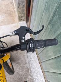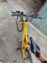 Riverside 120diB'TWIN , un modello ibrido (trekking) da20 pollici. Ecco le caratteristiche principali di questo modello: Destinazione d'uso:Ideata per bambini dai6 ai 9 anni(altezza tra 120 e 135 cm) per l'utilizzo in parchi cittadini o su sentieri battuti. Cambio:È dotata di un comando a manopola girevole per gestire6 velocità, rendendo il cambio marcia semplice per i più piccoli. Struttura:Presenta un telaio robusto in acciaio con un design ribassato per facilitare la salita e la discesa dalla sella. Sicurezza:Monta freni V-Brake con leve progettate appositamente per le mani più piccole dei bambini. Versatilità:I copertoni sono di tipo ibrido, adatti sia all'asfalto che a strade sterrate leggere. Disponibile da subito