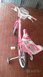 Bici per bimba, misura ruota 16". Con ruotine laterali e cestini portaoggetti. Visionabile a Piombino. Piccoli difetti sul sellino e pedali.