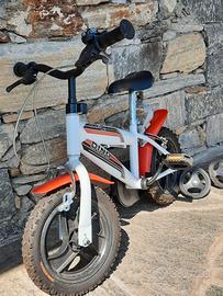 Bici bimbo anni 3/5, misura ruote da 12'' 1/2, marca Dino pro colore bianco con rotelle