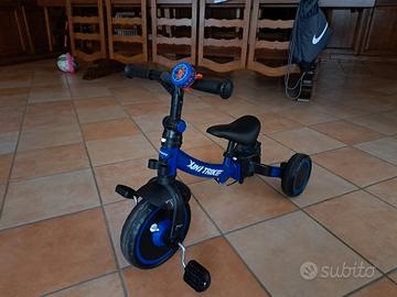 bicicletta, triciclo per bimbo. da utilizzare con o senza pedali ( balancebike). Dotata di manico che permette la spinta dal genitore.