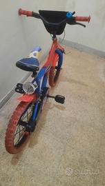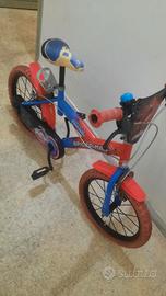 come foto bici SPIDERMAN della DINO made in italy, da 16 pollici usata poco comprata nuova bel 2024 cedo per passaggio a misura superiore, prezzo di realizzo non trattabile
