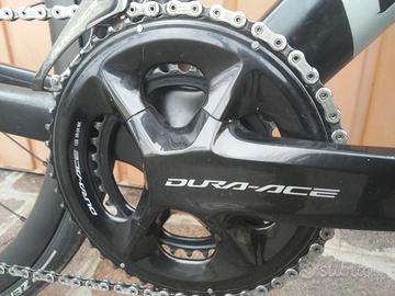 cambio shimano dura ace 12v elettronico, guarnitura 50x34, pignoni 11-34. Manubrio ICS cockpit bmc integrato misure 100x420mm.