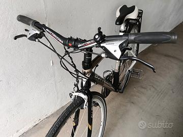 Vendo per inutilizzo Bici Bottecchia AV 803,tutta originale.Telaio in alluminio,Forcella in acciaio,Cambio Shimano 24 velocita',Freni in alluminio ,ruote 28 pollici,peso 11,6 kg,colore originale Nero/Bianco/oro Perfettamente funzionante con la maccanica tutta originale.Qualche lieve segno di usura sulla canna come da foto.Consegna in Loco dopo eventuale visione e prova.