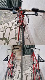Vendo bici Bottecchia. Cambio shimano sis 3x6. Ruote da 28, taglia L. Adatta a persone di medio/alta statura. Volendo, posso vendere separatamente un kit composto da gambo e attacco manubrio (nuovo) corto per adattarla a persone di statura media o per avvicinare il manubrio al prezzo di 20 euro in più. Questa bici è appena stata appena rimontata e presenta guarnitura tripla shimano quasi nuova, con pochi km, comandi cambio nuovi, deragliatore anteriore nuovo, morsetto reggisella a bullone nuovo, reggisella con doppia regolazione BBB. Cavi , guaine e pastiglie freno shimano nuovi. Pedali con aggancio mtb exustar, leggerissimi ,con doppia regolazione tensione e appena reingrassati. Ogni componente è pulito e lubrificato. Questo telaio ha viaggiato, è stato usato e presenta i segni del tempo ma non c' è alcuna traccia di ruggine visto che lo pulivo regolarmente e ritoccavo i punti di vernice saltati via. Inoltre nel complesso è in condizioni accettabili. Nasce come mtb 26 pollici rigida che ho convertito a 28 " con freni v brake al posto dei cantilever e trasformato in bici da trekking più e più volte. Ci ho fatto viaggi, allenamenti e passeggiate e in tutto ciò non mi ha mai dato un problema prima di metterla in disuso. Un telaio relativamente leggero ma molto robusto. Vendo a prezzo simbolico per recuperare le spese sopra indicate che ho avuto nel rimontarla. La sella, una selle italia slr, sarebbe da cambiare perchè molto usata. I copertoncini ( kenda da 35mm ) sono ancora in buono stato. Per qualsiasi altra info o altre foto sono a disposizione. Solo ritiro a mano, non spedisco.