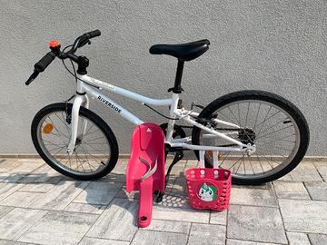 Bici BTWIN RIVERSIDE 100 20’’ di Decathlon. Adatta per bambini 6-9 anni, con cavalletto, catarifrangenti, campanello. Inclusi nel prezzo cestino e seggiolino porta bambola (da montare). Colore bianco (come da foto).