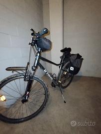 Usata ma in ottimo stato, leggera, in alluminio peso circa 7 kg, perfetta per trekking. Completa di accessori ovvero borse laterali, portapacchi posteriore e frontale, marsupio manubrio