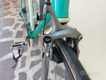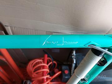 Bici artigianale professional da corsa del noto corridore Vicentino, Caneva. Perfetta, non presenta graffi . Anni 90, Verde con forcella cromata, cambio e freni Schimano Exage 500 ex, telaio alluminio Orial, cerchi ruote high performance della Nisi. Sostituiti pneumatici e camere d'aria con misura più larga.