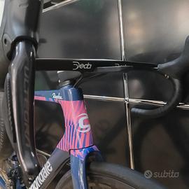 in vendita bici Cannondale Supersix evo misura 54, colore team, tenuta perfetta, gruppo Shimano Ultegra Di2, guarnitura Hollowgram 52/36, ruote in carbonio vittoria Elusion Carbon Disc SL, manubrio integrato Deda Alanera. peso della bici completa in foto 7.5kg,