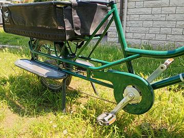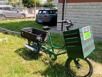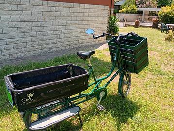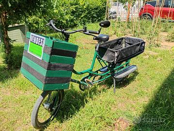 Bici capace muscolare acquistata nel 2022 adatta per il trasporto di bambini e merci. Personalizzata con cassetta in legno.