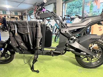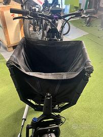 Bici cargo in vendita per uso privato. La bici dispone di un sistema di allungamento nella parte anteriore