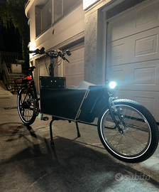 Vendo bici cargo ebike elettrica, motore bafang sul mozzo posteriore. Ruote maggiorate per maggiore comodità., sellino ammortizzato e altri miglioramenti. Usata con cassone per trasporto cane e merci, si può comprare a parte dal produttore cassone per trasporto bambini con cinture. Prezzo del nuovo intorno ai 2000 euro. Ritiro a mano a Bergamo, la bici è SMONTABILE per trasporto in auto (serve pazienza e manualità)