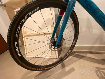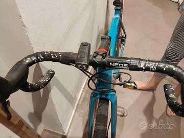 Caratteristiche Principali Telaio e Forcella: Realizzati in monoscocca di carbonio Columbus, offrendo un equilibrio tra leggerezza e resistenza per affrontare terreni misti come asfalto e sterrato. Design: Presenta una colorazione blu distintiva (spesso denominata "Deep Waters") con accenti grafici colorati sul tubo piantone. La struttura dei foderi verticali è continua fino al tubo orizzontale per migliorare lo smorzamento delle vibrazioni. Componentistica: Questo modello è tipicamente equipaggiato con gruppi specifici per il gravel, come lo Sram Rival 1x11 o lo Shimano GRX. La forcella Columbus Futura Cross permette il montaggio di pneumatici fino a 700x47c o 650bx52.Vendo per inutilizzo. Trattabile