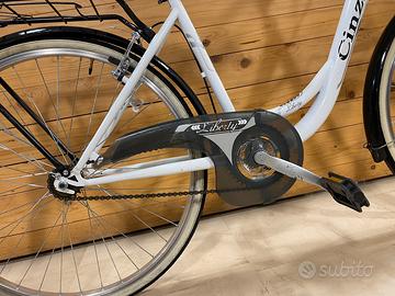 Vendo bicicletta Cinzia misura 26” elegante esteticamente e perfettamente funzionante. Giá controllata e registrata è pronta per essere utilizzata. Accessoriata con luci in regalo. Specifiche tecniche: misura= 26 freni= V-brake copertoni= 26*1.75