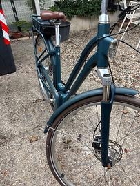 bicicletta da città elettrica con pedalata assistita ELOPS 900E con telaio blu.