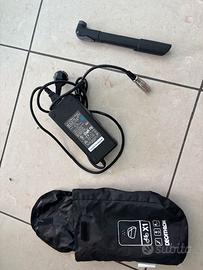 batteria ricaricabile, dotata di tutti gli accessori (pompetta per gomme portatile, cavo di ricarica cestino e campanello, lucchetto da motorino).