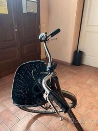 bici abbastanza usata ma funzionale. camera d’aria delle ruote cambiata recentemente, freni funzionanti con qualche difetto, dotata di cestello. consegna preferibile a mano.