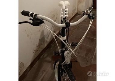 BICI VINTAGE MBM 28″ 21V ALLUMINIO La bicicletta Vintage Uomo di Mbm è realizzata con telaio e cerchi in alluminio doppia camera che aumentano la leggerezza e la manovrabilità della bici. Presenta un cambio shimano a 21 velocità, piantone manubrio regolabile che permette di soddisfare diverse posture, una sella estremamente comoda e pedali antiscivolo. La bici Vintage di mbm racchiude perfettamente il concetto vintage con componenti in tinta. MOD. 834 28”-21S TELAIO // FRAME Hydroformed alloy 6061 – h50 /54 /58 FORCELLA // FORK Hi-ten steel SERIE STERZO // HEADSET 1” 1/8 GUARNITURA // CRANK SET 42x34x24T white alloy MOVIMENTO // B/B SET Cartridge COMANDI // SHIFTER Sh st-ef 51 CAMBIO POSTERIORE // REAR DERAILLEUR Sh TY300 FRENI // BRAKES Black Alloy RUOTA LIBERA // FREE WHEELSh tz 500-7 PEDALI // PEDALS White anti- slip MOZZI // HUBS Black alloy w/quick release CERCHI // RIMS White alloy double wall GOMME // TYRES 700×38 color TUBO SELLA // SEAT POST White alloy ATTACCO MANUBRIO // STEM Adjustable white alloy MANUBRIO // HANDLEBAR White alloy SELLA // SADDLE Selle Bassano Vintage PESO // WEIGHT Kg 15 BOX 180 0,25 m³