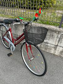 Bicicletta City bike. Cambio Shimano anteriore e posteriore 7x3 rapporti. Cavalletto. Campanello. Cestino. Porta pacchi posteriore. Luce posteriore. Sella confort. Perfettamente funzionante. Ruota 28.