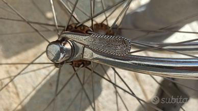 Bici con telaio forcella columbus, componenti campagnolo, la bici era ferma da un po' ma gonfiate le gomme ho fatto un giro e la provato freni e cambio che si sono rivelati perfettamente funzionanti. Per cui la bici è pronta per essere usata. La bici con il sellino al minimo era in uso ad una persona alta 150 cm. La bici si può vedere a Incisa Scapaccino, in provincia di Asti. Se veramente interessati all'acquisto si può ritirare a Torino, previo anticipo.