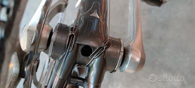 Il telaio è di primi anni 90 ed è stato riverniciato quattro anni fa, è stato sostituito il movimento centrale ed il deragliatore posteriore con dei componenti nuovi new old stock. Copertoncini, camere d'aria, pattini e guaine sono nuovi.
