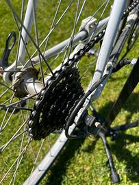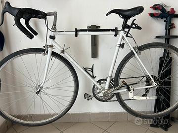 Il mezzo in questione ha un telaio dei primi anni 80 in acciaio, cerchi in alluminio, sostituito pacco opinioni originale (che cedo insieme al mezzo) con uno nuovo a sei velocità. Completamente revisionata, cavi cambio, cavi freni, guaine, pattini freno, copertoni, camera d’aria, cerchioni, porta borraccia, leve freno: tutto nuovo. Sostituito anche il movimento centrale. Sella leggermente danneggiata dal lato sinistro ma ampiamente utilizzabile. Il mezzo al momento monta due copertoni 700 × 32 da Gravel, cedo nel pacchetto anche copia di copertoni da città 700 × 28 (se si vuole utilizzare la come City bike) ed un ulteriore coppia di copertoni 700 × 25 (se la si vuole utilizzare come bici da corsa). A richiesta fuori annuncio, dispongo anche di scarpini e attacchi da corsa, scarpini attacchi per Gravel, entrambi numero 42. DISPONIBILE PER LA PROVA, NON SPEDISCO, NO PERDITEMPO, PREZZO LEGGERMENTE TRATTABILE.