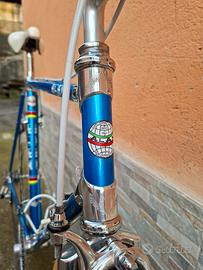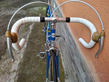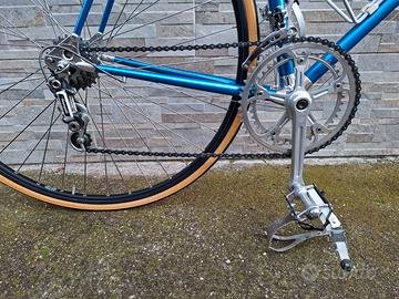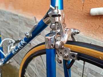 Alan Superecord 1978 restaurata fedelmente, monta gruppo Campagnolo Super Record completo, telaio perfettamente integro privo di ogni difetto. Bici da vetrina, pronta per pedalare. NO SCAMBI. SOLO RITIRO A MANO. Taglia telaio 56x56 altezza consigliata 173-183 cm Materiale telaio e forcella: Alluminio Deragliatore anteriore: Campagnolo Super Record Deragliatore posteriore: Campagnolo Super Record Guarnitura: Campagnolo Super Record 53/42 Pacco pignoni Regina 6 velocità Pedali: Campagnolo Super Record Freni: Campagnolo Super Record Leve freni: Campagnolo Super Record Ruote: Ambrosio con copertoncini Kenda 700x23 Reggisella: Campagnolo Super Record Sella: Laser Attacco manubrio: Cinelli Manubrio: Cinelli