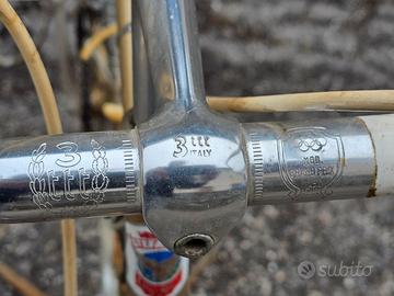 Costruzione artigianale, telaio Columbus alleggerito 54 color oro con cerchi nisi 26" anodizzati oro, cambio e deragliatore campagnolo gran sport. Necessita piccola manutenzione (sostituzione tubolari e pattini freno, lubrificazione parti in movimento) e per il resto è marciante.