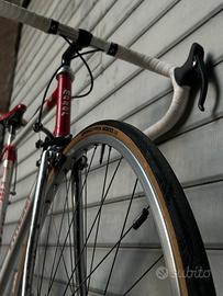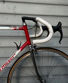 Vendo bici da corsa Moser 51.151 degli anni 80. Il telaio presenta i manettini interni al profilo del tubo obliquo a sottolineare un assetto da cronometro. Lo stesso manubrio 3t in alluminio presenta i fori per il passaggio cavi integrato.