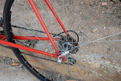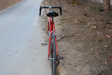 Bianchi Sprint 28C del 1984 di colore rosso, sottoposta a restauro conservativo, quindi vernice e decals originali dell'epoca. Sono stati sostituiti i cerchi originali con altri Campagnolo in buonissimo stato, pista frenante ottima, dritti e scorrevoli, mozzi Ofmega originali revisionati sostituendo le sfere e ingrassandoli con grasso specifico.Anche il movimento centrale è stato revisionato, gabbiette a sfere nuove ed ingrassati. Idem per la serie sterzo, pulita e reingrassata. Pedali corsa in acciaio dell'epoca, puliti, lubrificati ed applicata una particolare vernice protettiva per evitare future ossidazioni. Il telaio e la forca dopo la ripulitura e la lucidatura hanno subito un trattamento con una speciale vernice trasparente protettiva (no trasparente acrilico in bomboletta sia chiaro) atta ad evitare future ossidazioni. Componenti Campagnolo, leve e deragliatore ant. e post. Valentino Nuovo. Freni Universal.