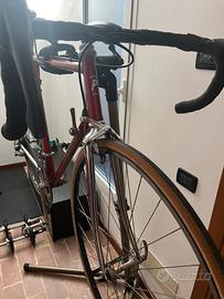 Bici corsa epoca Telaio in acciaio taglia 56 Cerchi nisi hr 22 Mozzi miche primato 6-7 velocità Leve cambio suntour sl Freni miche primato Deragliatore anteriore shimano fd a105 golden arrow Deragliatore posteriore danneggiato e da sostituire Visibile carbonera