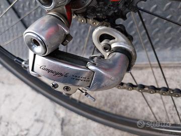 Fondriest telaio in alluminio alleggerito Deddacciai misura L adatta da mt 1.75 1.85 Carbonfork...montata Campagnolo Veloce ..9 v movimento centrale ammodernato con 34/50..FSA fornisco la sostituita 39/42 frenatura Camp.Avant ruote Gippiemme.Sella ITALIA ..accessori vari inclusi. 1 copertura sostiva camere..ecc Ribassato non trattabile.