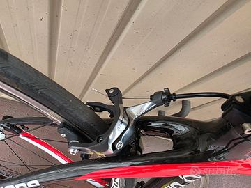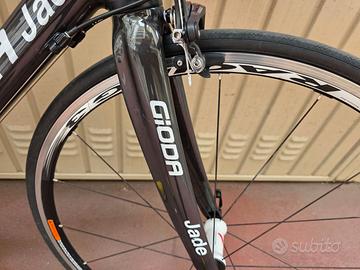 Bici corsa full carbon Gioda Jade, gruppo completo Shimano Durace, ruote Fulcrom R3, pacco pignoni 10v, 12-30, corone compact 50-34, misura centro centro 42cm, misura tubo orizzontale 52cm, taglia M, peso complessivo circa 8,5kg. Km totali effettuati circa 5.000, inclusi pedali Look. Da valutare spedizione.