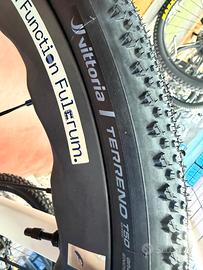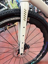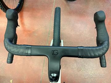 ruote carbon FULCRUM SHARQ (mozzi con cuscinetti ceramici) manubrio integrato carbon gravel con misure: estensione 90mm; larghezza piega manubrio (al centro della curva anteriore) 410mm; larghezza piega manubrio (al centro della parte terminale del manubrio posteriore con flare 16°) 500mm; pneumatici: VITTORIA TERRENO MIX 50mm sella: FIZIK Vento ARGO X5 prezzo EUR 5299