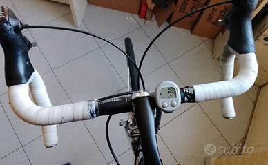 tutti i componenti Shimano 105. Ha un computerino digitale conta km e pedali in alluminio con attacco per scarpe da ciclista. - Cambio Shimano 10x2 velocità, levetta a scatto nel manubrio, manubrio in alluminio. - Cerchi da 28 in alluminio a sgancio rapido, telaio in alluminio leggerissimo, Shimano, sella regolabile. Altezza telaio fino alla sella 65 cm. Potete vederla ad Aprilia, disponibile tutti i giorni. L'unica cosa è che si è rotto il filo del cambio anteriore, ma per il resto è tutto ok e funzionante. bici di grande valore. Ritiro a mano su Aprilia.