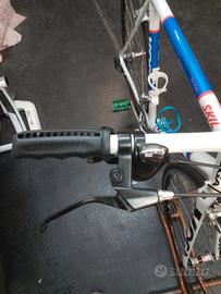 vendo bicicletta Kuga ex bicicletta Team professionisti skill, trasformata in city bike, con manubrio , leve freno e cambio nuove. le ruote hanno un anno di vita e sono state usate pochissime volte e montano copertoncini Vittoria Rubino nuovissimi. ho anche il suo manubrio da corsa originale e il cambio Ultegra originale. taglia telaio 57 va bene per persone da un metro e ottanta fino a un metro e novanta. sono interessato anche a scambio con bici corsa vintage di pari valore. La bicicletta è perfetta non ha neanche un graffio. non spedisco, ritiro a mano.