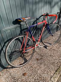 Bici corsa Legnano vintage telaio S/M adatto anche a donna o da 160/170 circa ma adattabile ad altezze un po’ maggiori. 6 rapporti posteriori +2 anteriori, comandi sul telaio. La bici è stata ripristinata e controllata ingrassando anche serie sterzo e movimento centrale pedali, estetica con qualche segno, meccanica buon funzionamento generale.