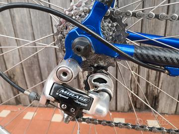 Bici da corsa marca Mass , telaio Columbus in alluminio con forcella in CARBONIO marca KUOTA, taglia 54, gomme nuove, cambio Campagnolo Mirage a 18 rapporti, manubrio ITM, sella ergonomica nuova, contachilometri. Pronta all'uso.
