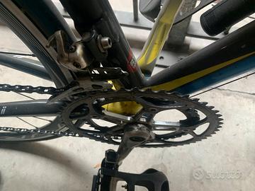 Vendo o permuto con E bike la mia bici da corsa Merletti , per problemi fisici. Telaio alluminio e parti in carbonio , per altezza cm 170/175 Doppi comandi freni , ruote miche alto profilo , pedali a gabbietta o look e cambio record a 9 velocita con levette a manubrio. Qualche graffio sul telaio . In omaggio un paio di magliette tg 52. Mi trovo a Milano Mm3 fermata Brenta