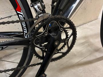 Bicicletta da corsa modello Ridley Compact, telaio in alluminio , con design a spigoli vivi "Sharp Edge" e una forcella in fibra di carbonio. CambioCampagnolo Avanti 8 velocità . Guarnitura anteriore M-Wave. Cerchi Vision Trimax 35 per biciclette da corsa. • Tipo: Cerchio in alluminio per copertoncino. • Profilo: Aerodinamico da 35 mm. Freni a pattini Cambio al manubrio Bicicletta vintage ottima per allenamenti . Telaio per persone h 1,70/1,80 No spedizione