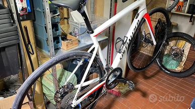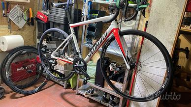 vendo specialized sl6 tarmac completamente carbonio cambio meccanico Ultegra 11v cerchi DT SWISS tag.54 ben tenuta colore bianco perlato arancio nell bella